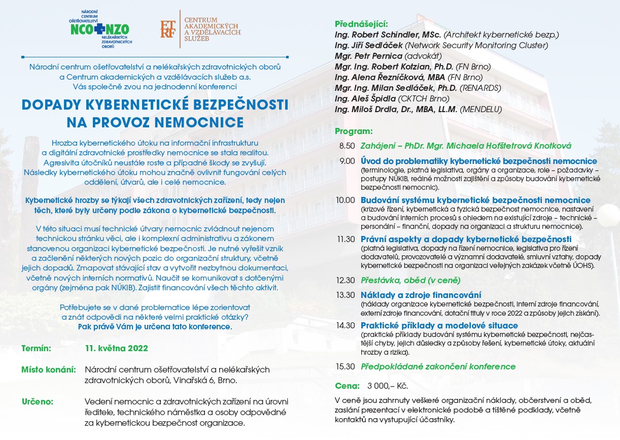 Národní centrum ošetřovatelství a nelékařských zdravotnických oborů a Centrum akademických a vzdělávacích služeb a.s. Vás společně zvou na jednodenní konferenci.
