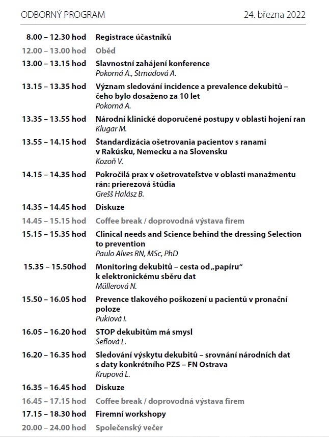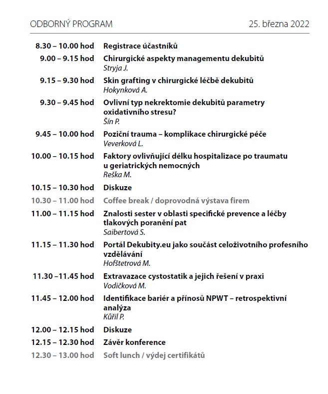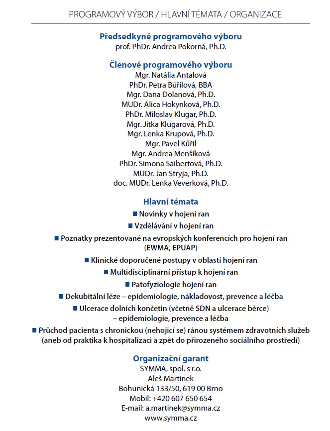 Odborná konference „Nové výzvy v hojení ran“ a V. ročník sympozia „Dekubity“