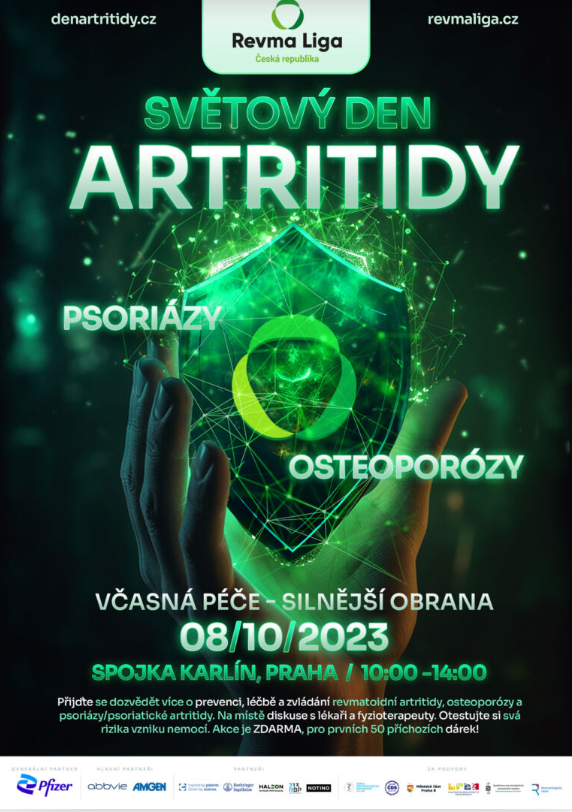 Pacientská organizace Revma Liga Česká republika na to upozorní na akci, kterou pořádá u příležitosti Světového dne artritidy. Dorazí na ni lékaři a další specialisté, a příchozí tak mohou své případné zdravotní potíže konzultovat přímo s nimi. Chybět nebude ani doplňkový program, výstava fotografií nebo zeď přání. Osvětový den odstartuje v pražském Karlíně 8. října v 10 hodin.