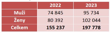 Vývoj počtu klientů VZP, kteří žádali o příspěvek a vyplacená suma v letech 2022–2023