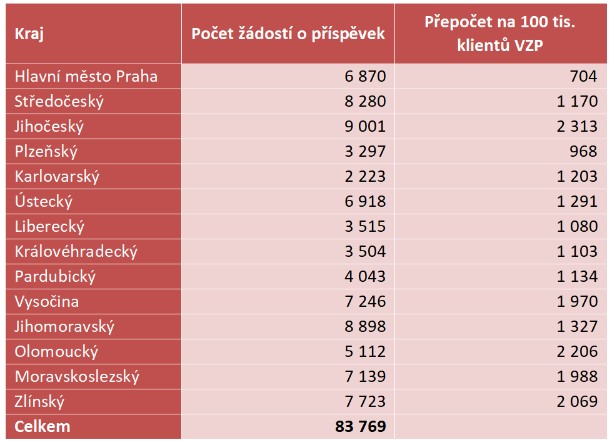 Počet žádostí o příspěvek v jednotlivých krajích v roce 2023