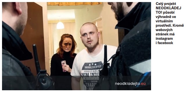 Vzdělávací program pro nově nastupující policisty trval rok, a tak zde již původní účastníci nepůsobí. Aktuálně jsme v týmu jen tři. Video vzniklo během omezujících opatření a v červenci jsme jej publikovali. Založili jsme facebookové stránky, profil na instagramu, webové stránky www.neodkladejto.eu, kanál na YouTube a je pro nás milým překvapením, jaký je o to zájem.